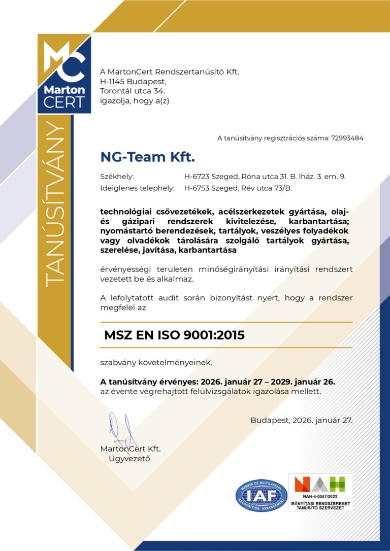 Az NG-Team Kft 2019 október 09.-én alakult meg. Elsősorban olaj és gázipari területekre szakosodtunk.